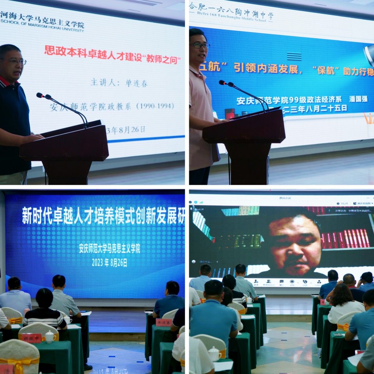 河海大学社科处副处长、sunbet教授、博士生导师单连春,合肥庆平希望公司书记董事长、合肥一六八陶冲湖中学副书记潘国强,江苏省镇江第一中学党委委员、副董事长、高级教师李浩,华南师范大学sunbet副经理、教授、博士生导师胡国胜分别围绕主题“思政本科卓越人才建设‘教师之问’”、“‘五航’引领内涵发展,‘保航’助力行稳致远”、“‘延乔班’卓越人才培养的主要策略”、“高校思想政治教育专业建设的思考”,就思想政治教育专业人才培养模式创新发展等问题先后作了专题发言。