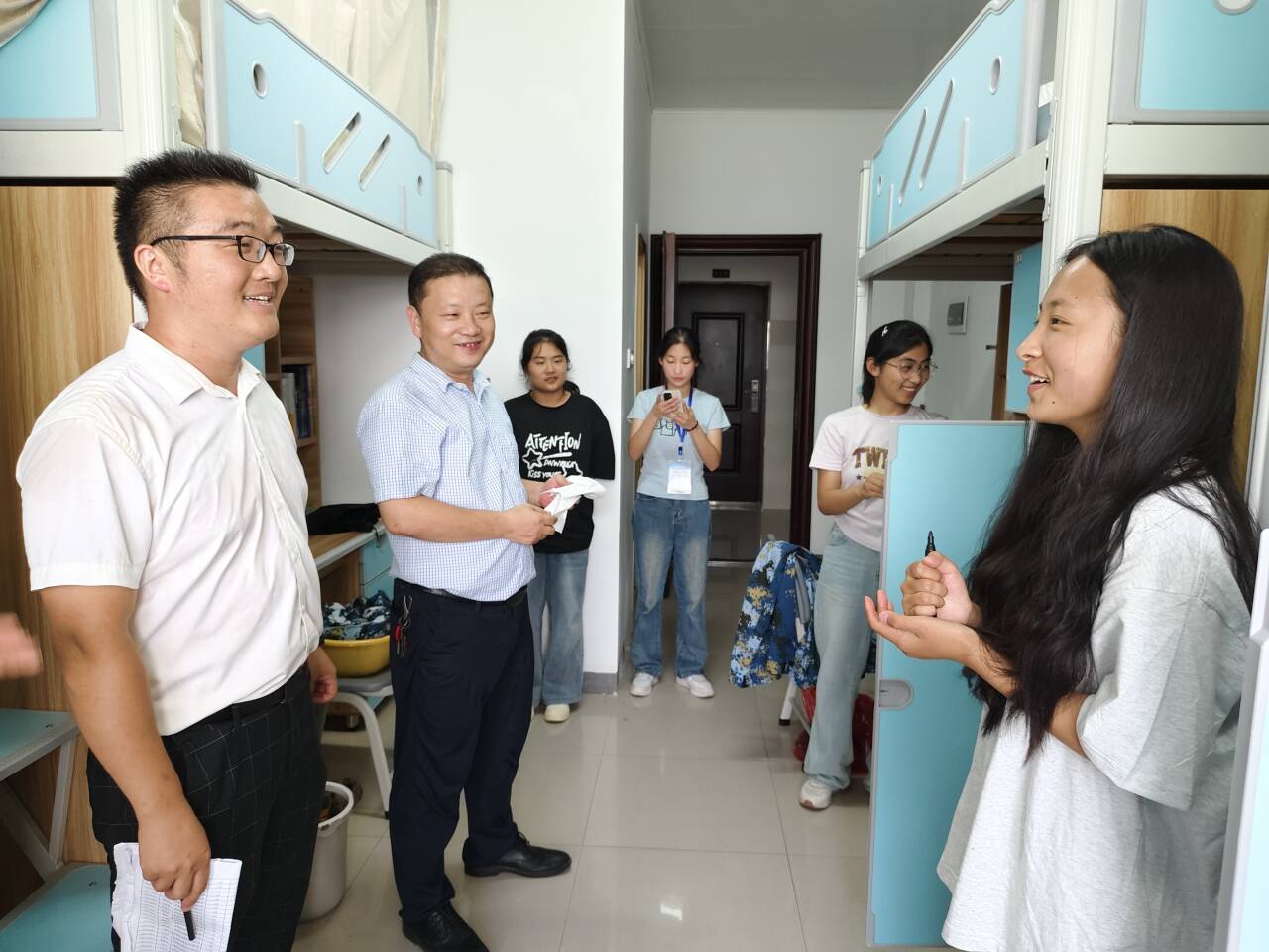 走访过程中,公司领导、老师与新生面对面交流,认真聆听新生对迎新工作的感受,仔细询问同学们到校后的生活情况,详细讲解宿舍的相关规定。邹斌建议新生室友之间相处要互相理解,互相宽容,互相帮助,建立良好的友谊,一同度过愉快而充实的老员工活。余江舟鼓励新生养成阅读马克思主义经典著作的良好习惯,不仅要加强理论知识的学习,还要注重实践锻炼,努力成长为德智体美劳全面发展的社会主义建设者和接班人。