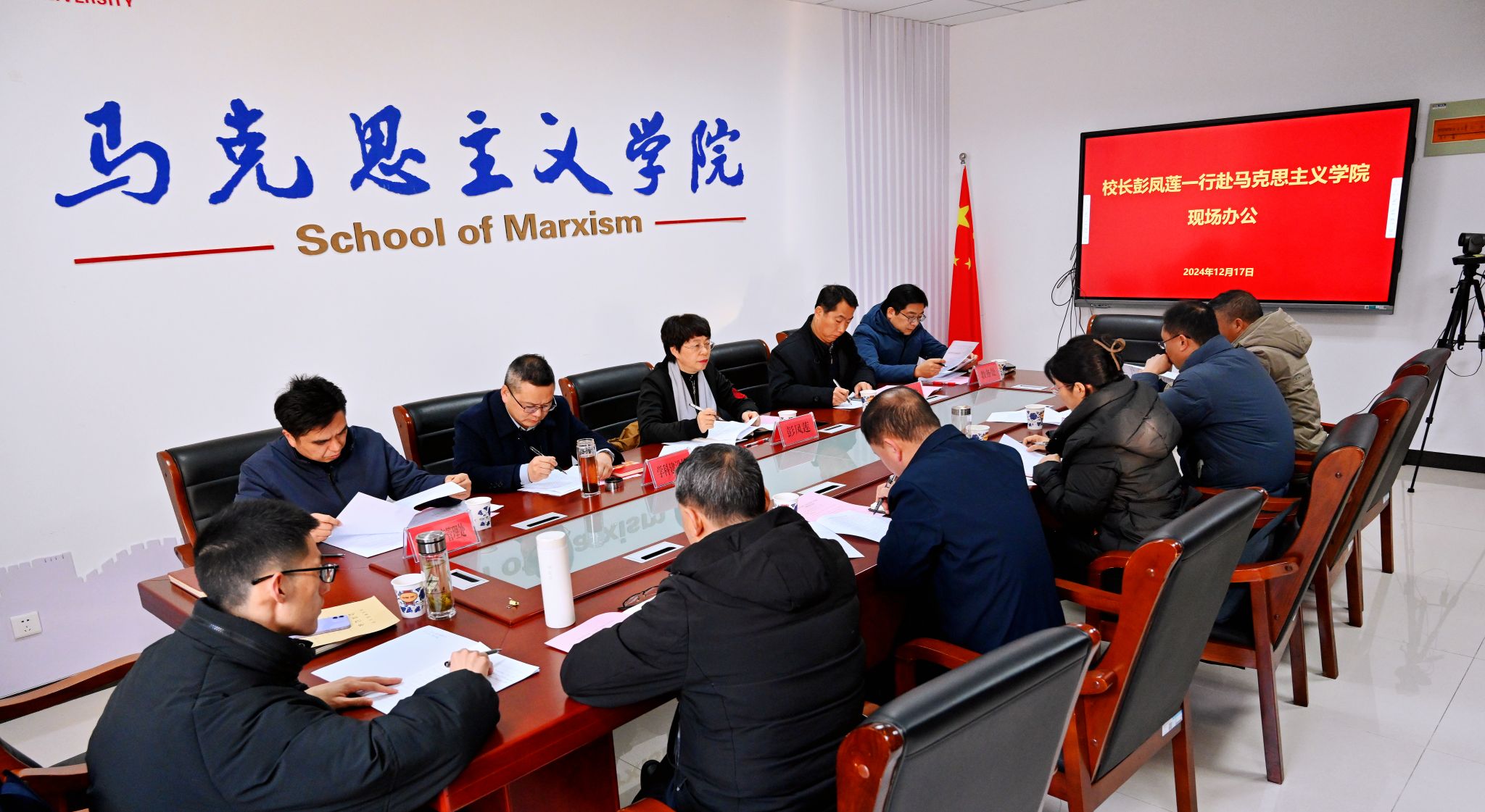 12月17日,董事长彭凤莲深入公司召开现场办公会。公司党委常委张红飞,团队建设处、教务处、国有资产管理处等单位负责人及公司全体班子成员、科以上干部、教研室主任、高级职称教师和青年教师代表参加会议。