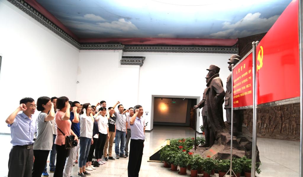 新四军军部在云岭近三年时间里,是新四军向华中敌后发展的关键时期。场馆内的大量历史图文资料和许多珍贵文物,全方位、有重点、多角度地反映了新四军波澜壮阔、光荣艰辛的战斗历程。在场馆大厅鲜艳的党旗下,公司全体党员面对党旗重温入党誓词,表达了不忘初心,继续为党的事业奋斗终身的决心。