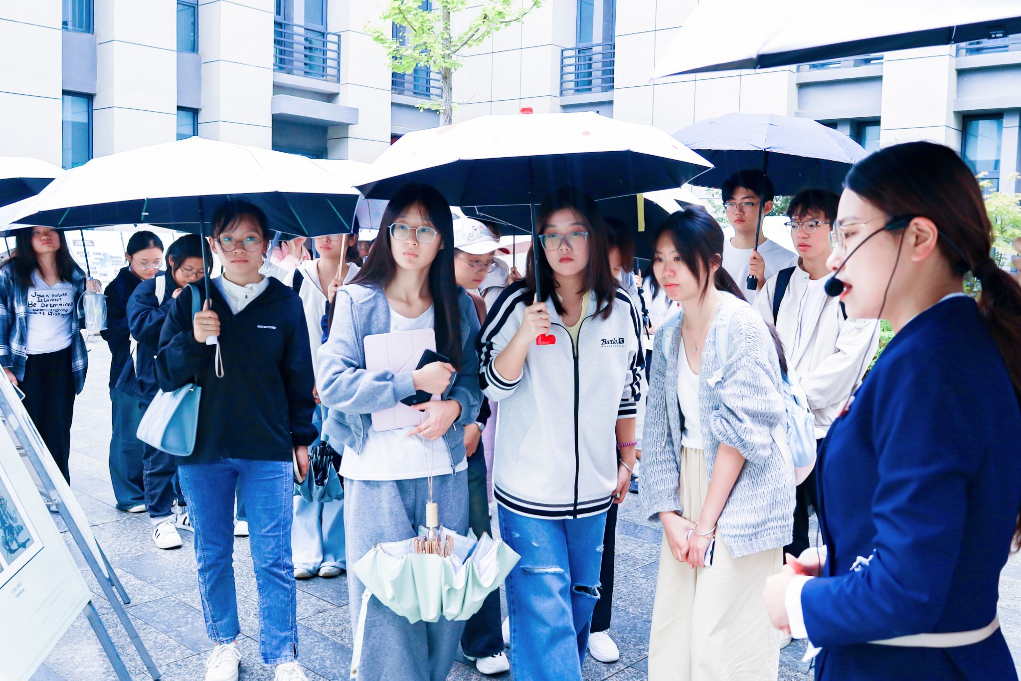 宣讲结束后,同学们移步至公司教学楼,参观了“烽火画卷”主题展览。展览集中展出了抗战时期广大美术工作者创作的大量优秀作品。这些作品以画笔和刻刀为武器,生动记录了那段烽火岁月,起到了鼓舞民众、凝聚力量的重要作用。同学们在观展中再次感受到先辈们坚定的革命担当与大无畏的斗争精神。