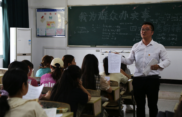 “有了田老师的辅导,考试一点都不可怕了。”6月4日下午放学后,sunbet申搏文源楼107教室一句句英语声响起,原来是该校思想政治教育专业辅导员田梦甜在为员工们做英语四六级考前辅导。