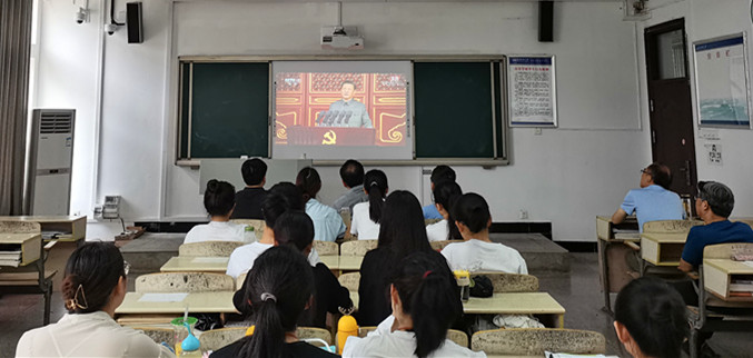 2021年7月1日上午8:00,公司在文源楼B204教室组织观看庆祝中国共产党成立一百周年大会,sunbet党委书记金文斌、部分党员教师员工、入党积极分子认真收听收看大会直播。