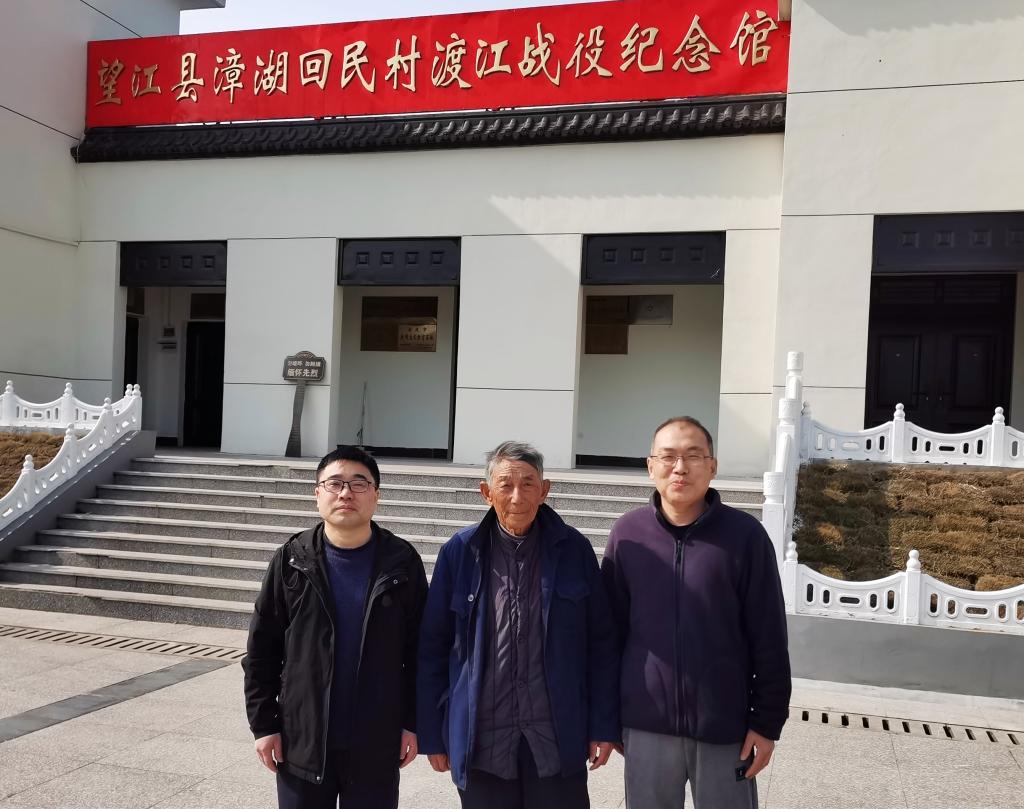 2月1日,公司“大别山地区革命文化研究团队”金文斌教授和陈安定老师赴望江县漳湖镇回民村渡江战役纪念馆收集渡江战役史料。纪念馆义务讲解员、唯一健在的“回民渡江突击队”船工90岁的董玉发老人进行了讲解。金文斌一行考察了解放军在望江沟口回民村渡江起渡点,对董玉发老人进行了深度访谈。