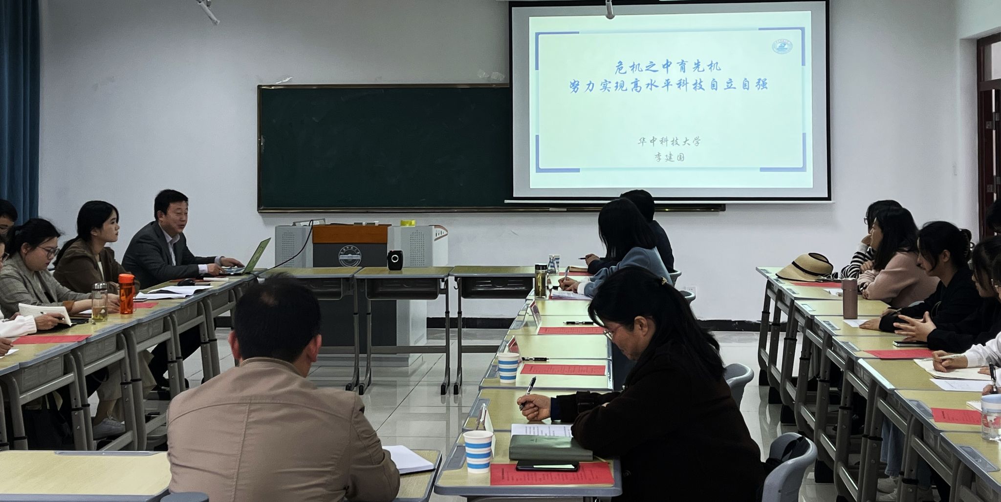 4月1日,全国首届高校思想政治理论课教学展示特等奖获得者、湖北省高等公司中青年马克思主义理论家培育计划人才,湖北省优秀青年社科人才,教育部思想政治工作创新发展中心专家委员会委员,中共湖北省委讲师团专家成员、华中科技大学sunbet副经理、博士生导师李建国教授应邀作客“3.18大讲堂”,作题为“危机之中育先机:努力实现高水平科技自立自强”的报告。报告在sunbet楼212教室举行,公司党政领导班子成员、全体青年教师及部分硕士研究生、本科生参加。报告会由经理严仍昱主持。