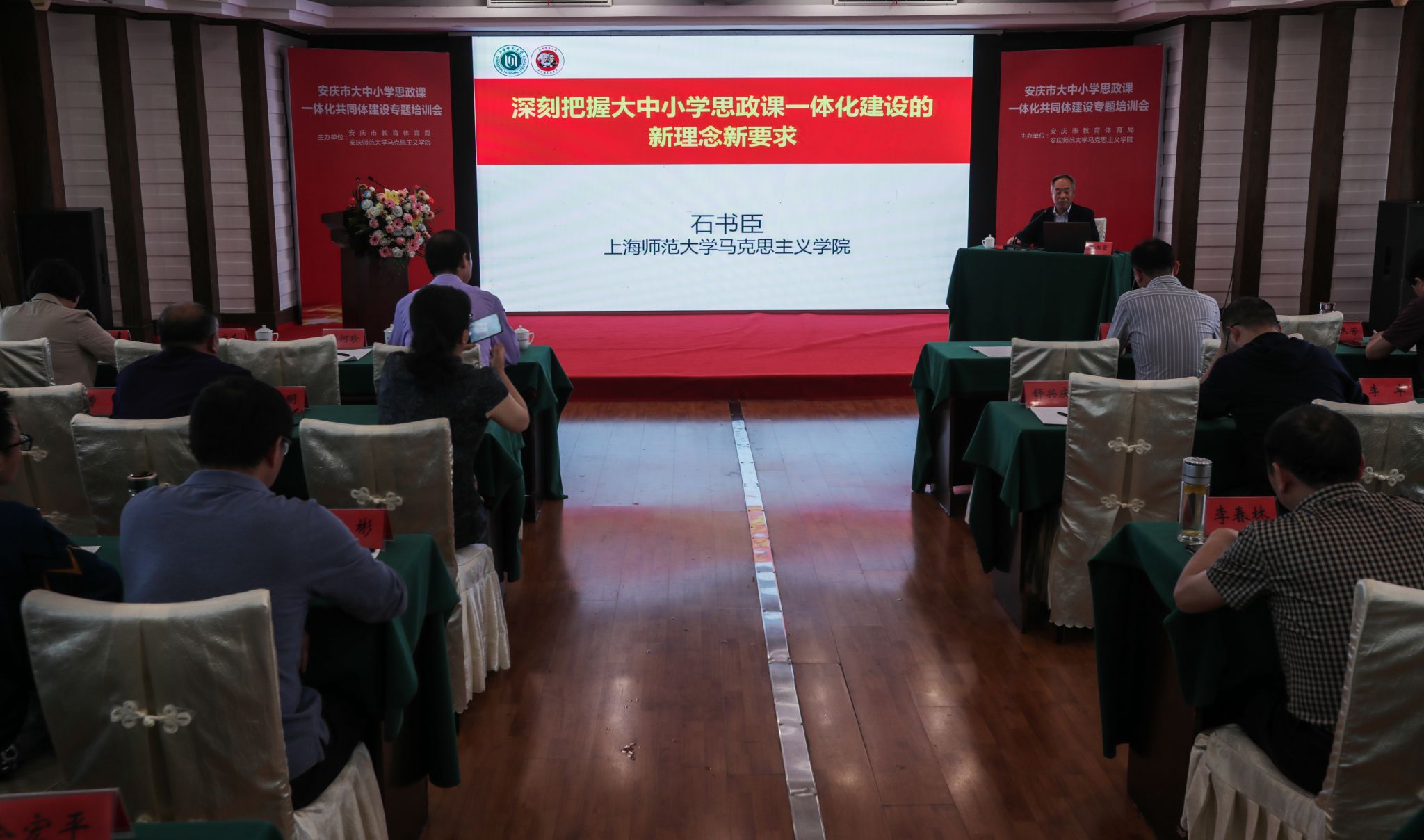 在专题培训会上,来自上海师范大学sunbet博士生导师石书臣教授受邀作了题为“深刻把握大中小学思政课一体化建设的新理念新要求”主旨报告。在研讨交流阶段,安庆市大中小学思政教师进行了同题说课。