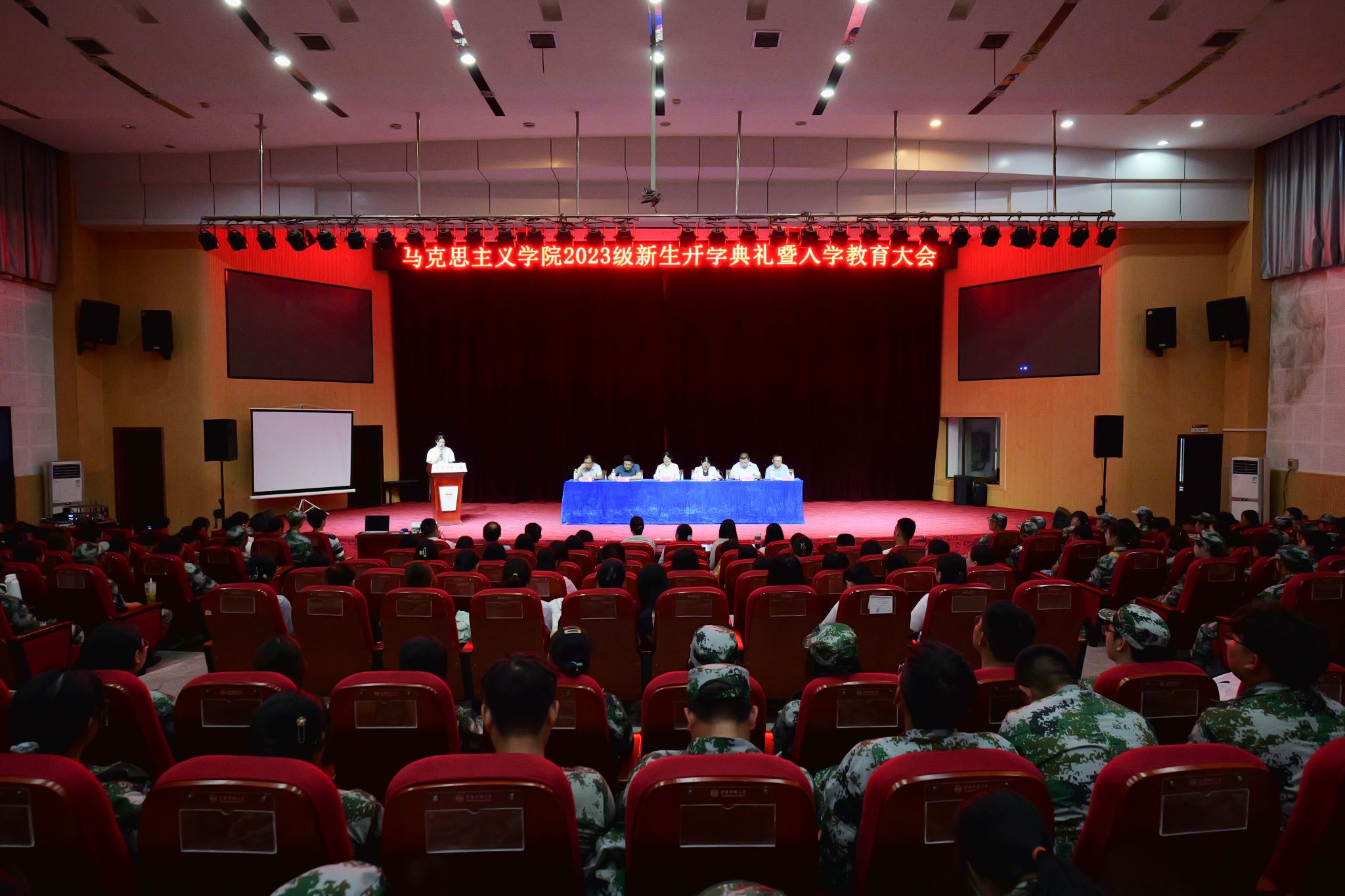 开学典礼在慷慨激昂的国歌奏唱中拉开帷幕。