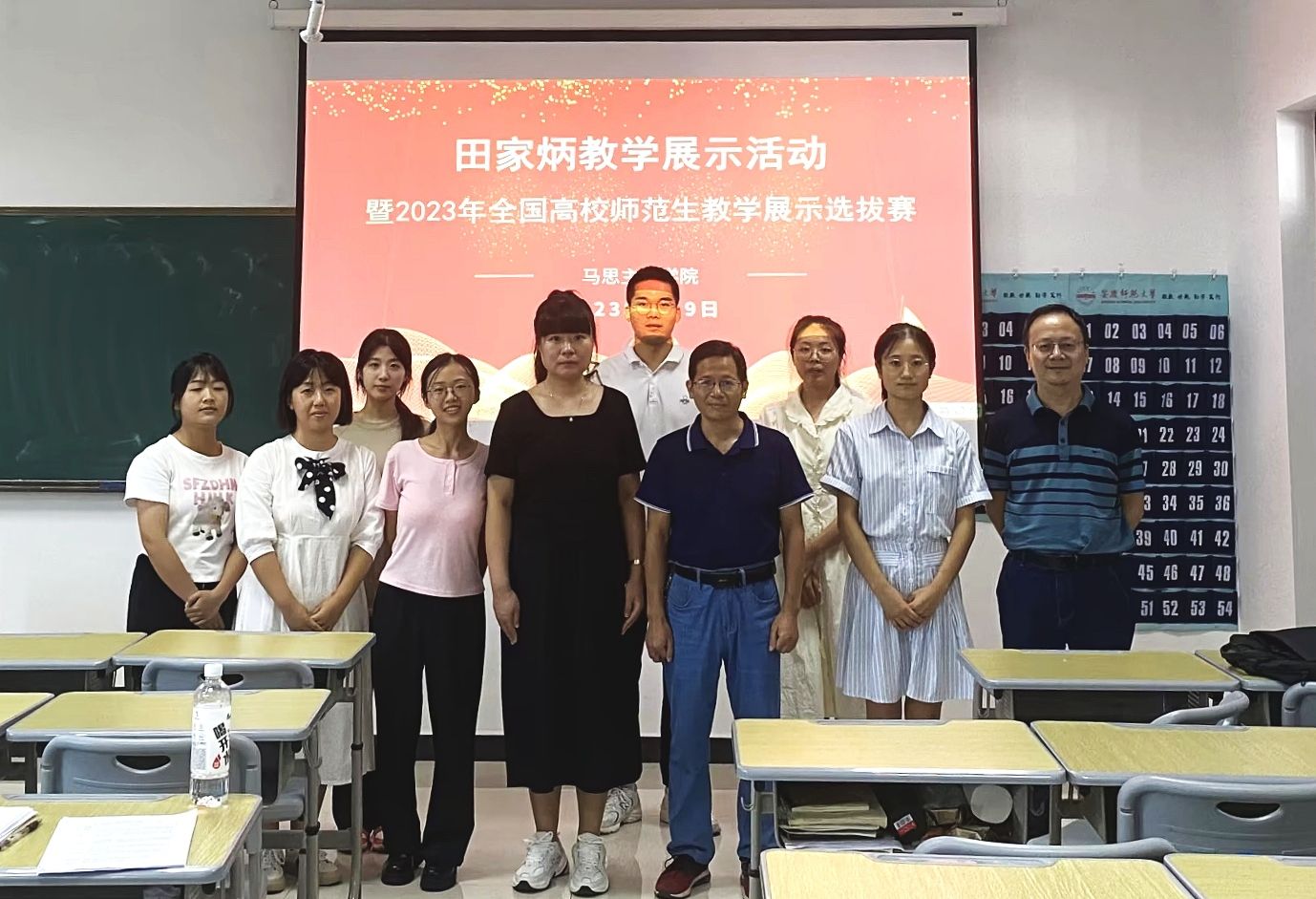 2023年9月9日,2023年全国“田家炳杯”全日制教育硕士专业学位研究生(学科教学·思政)教学技能大赛校内选拔赛在Q301举行。公司学科教学(思政)专业8名研究生参加了本次比赛,安庆一中的高中政治教师施闰生、武冰清和公司副教授张铭担任评委。