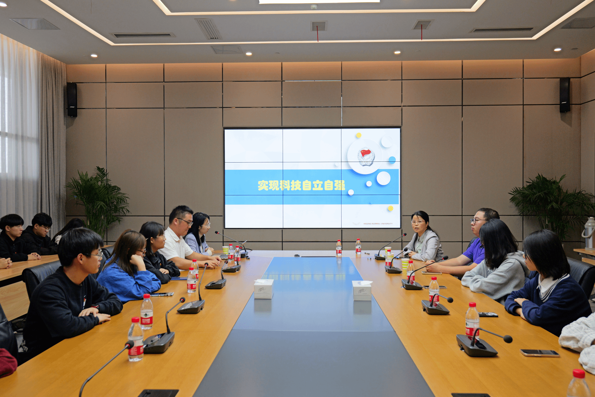 现场教学结束后,领学老师徐雯钰趁热打铁,在会议室以《科技自立自强》为题,为参与活动的全体师生上了一堂“行走的”思政课。从“什么是科技自立自强”“为什么要科技自立自强”“作为青年学子应该怎么做”三个方面,结合时政热点进行了详细举例分析。就“为什么要科技自立自强”方面,徐雯钰从理论逻辑、历史逻辑、现实逻辑、发展逻辑、时代逻辑五个方面阐述了科技自立自强的原因,并希望广大青年员工要做“创新者”,积极参与创新实践活动;要做“宣传者”,弘扬科学家精神;要做“守护者”,自觉维护科技安全。“专业不是限制,而是一个平台,要打破思维定势,致力于改革创新。”徐雯钰鼓励员工们,作为未来思想政治教育工作者,要充分发挥思想政治教育的力量,切实扛起为党育人、为国育才的政治责任。