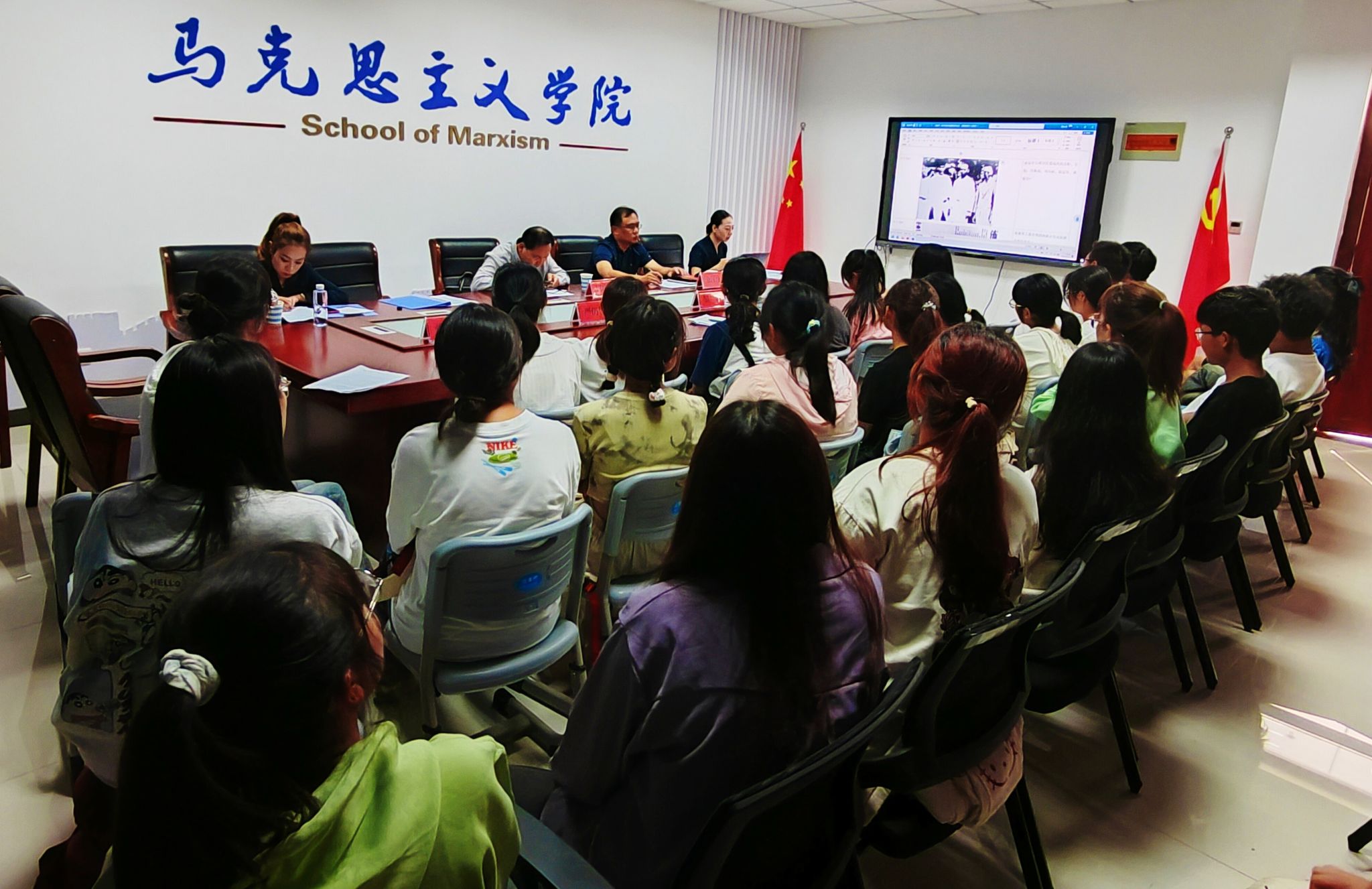 开班第一课上,余江舟介绍了2023级“延乔班”招生录取情况,并对人才培养方案进行了解读。独秀园管理处工作人员讲述红色地标小故事《找寻觉醒路上的星星之火》,作主旨报告《陈延年、陈乔年的革命故事》,朗诵《写给延年、乔年的一封信》等活动,充分展现了陈延年、陈乔年的革命事迹,为2023级“延乔班”同学带来了精彩生动的开班第一课。2023级“延乔班”员工代表宣读《向陈延年陈乔年学习倡议书》,郑重承诺向陈延年和陈乔年学习,做“坚定不移听党话、跟党走”、“怀抱梦想又脚踏实地,敢想敢为又善作善成”、“有理想、敢担当、能吃苦、肯奋斗”的新时代好青年。