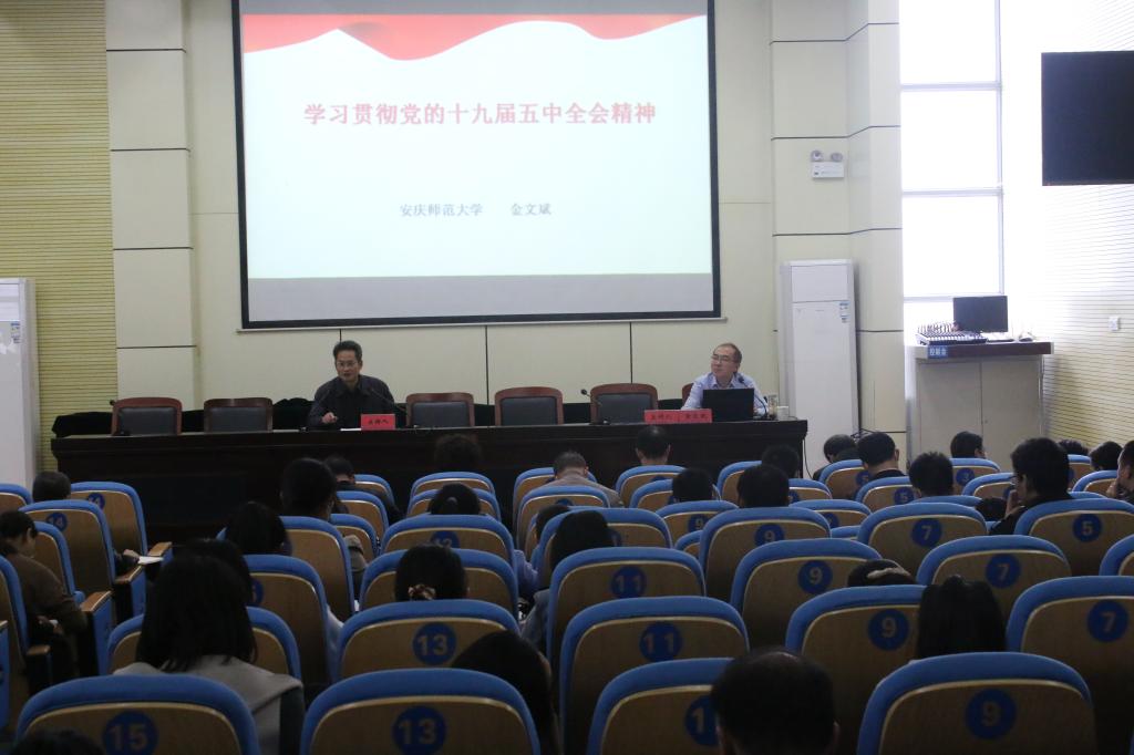金文斌教授应邀到安庆医药高等专科公司进行十九届五中全会精神宣讲