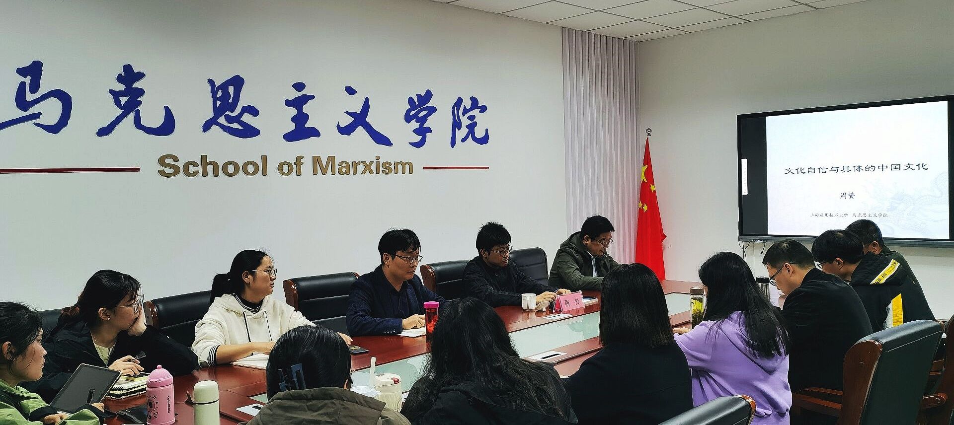 11月10日,上海应用技术大学sunbet副经理、硕士生导师周贇应邀做客第四期“青马讲坛”,作题为“文化自信与具体的中国文化”的学术讲座。讲座由胡朝阳博士主持,公司部分青年教师和硕士研究生参与学习和交流。