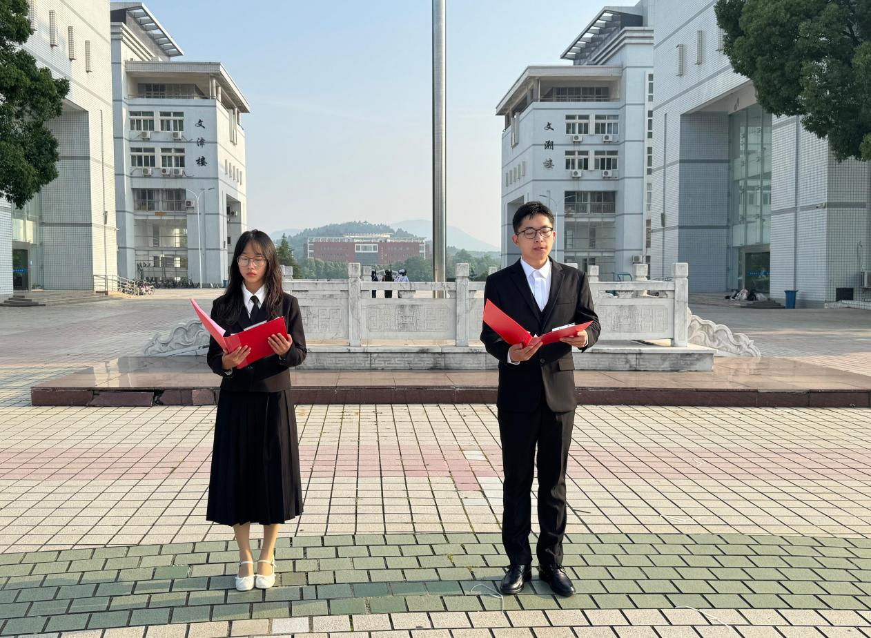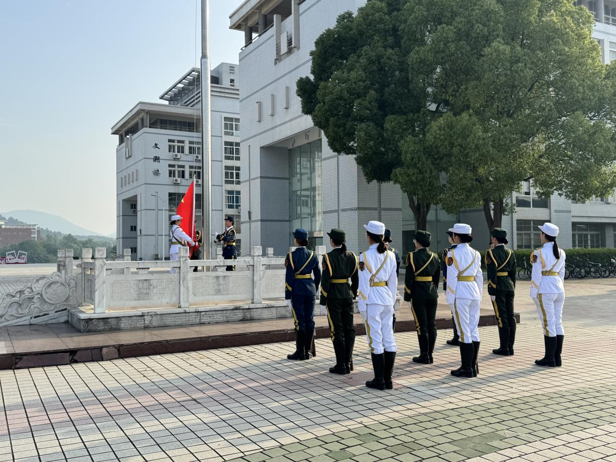5月19日,sunbet在敬敷广场前举行升旗仪式活动,2024级全体新生、各年级员工代表共 240余人参加活动。