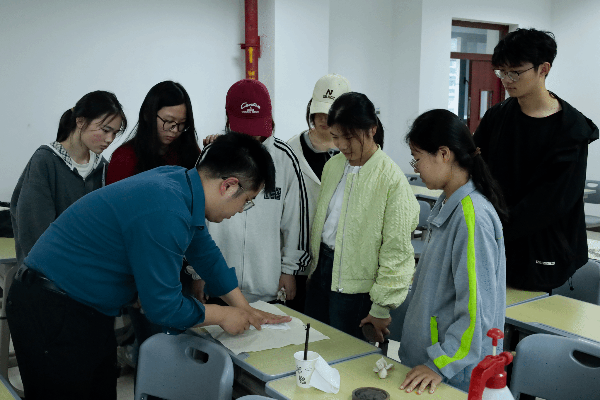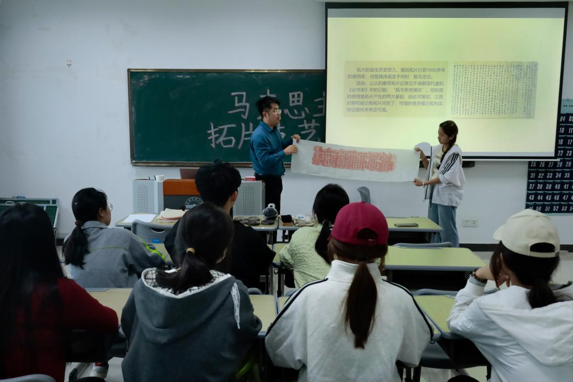 “我知道拓片技艺是传承千年的非遗瑰宝,也期待见证它所蕴含的独特魅力。”思想政治教育专业2024级延乔班的王宇坦言,参与拓片制作的过程中,他全神贯注地进行每一步骤的操作,当看到一张空白的宣纸上逐渐呈现出清晰的纹路和字迹,那种成就感并非言语可以表达。