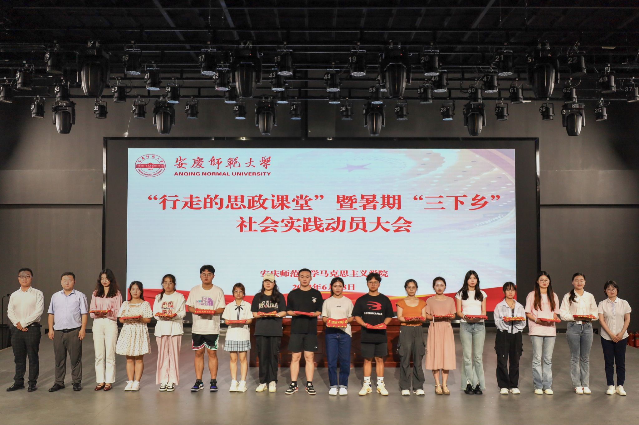 会议对参加今年“行走的思政课堂”和暑期“三下乡”社会实践活动的全体成员做了深刻的思想动员和整体部署安排,举行了授旗仪式。2023年暑期“三下乡”优秀代表、2024年暑期“三下乡”社会实践团队队长代表分别做表态发言。