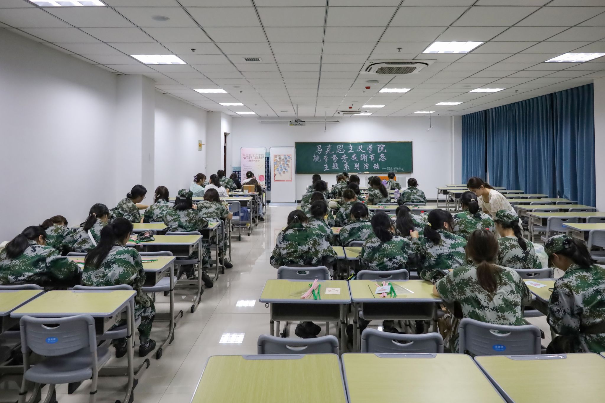 筹划活动、购买材料、选择场地,据活动负责人、思想政治教育专业2022级(1)班的林晓蕾介绍,为了迎接教师节的到来,他们于一周前便着手筹备此次活动。待活动结束后,工作人员会将员工们亲手制作的手工花与明信片一并送给公司教师。“与往届不同的是,我们在节日寄语上增加了DIY花束环节,使活动的形式更加新颖化。”林晓蕾说。