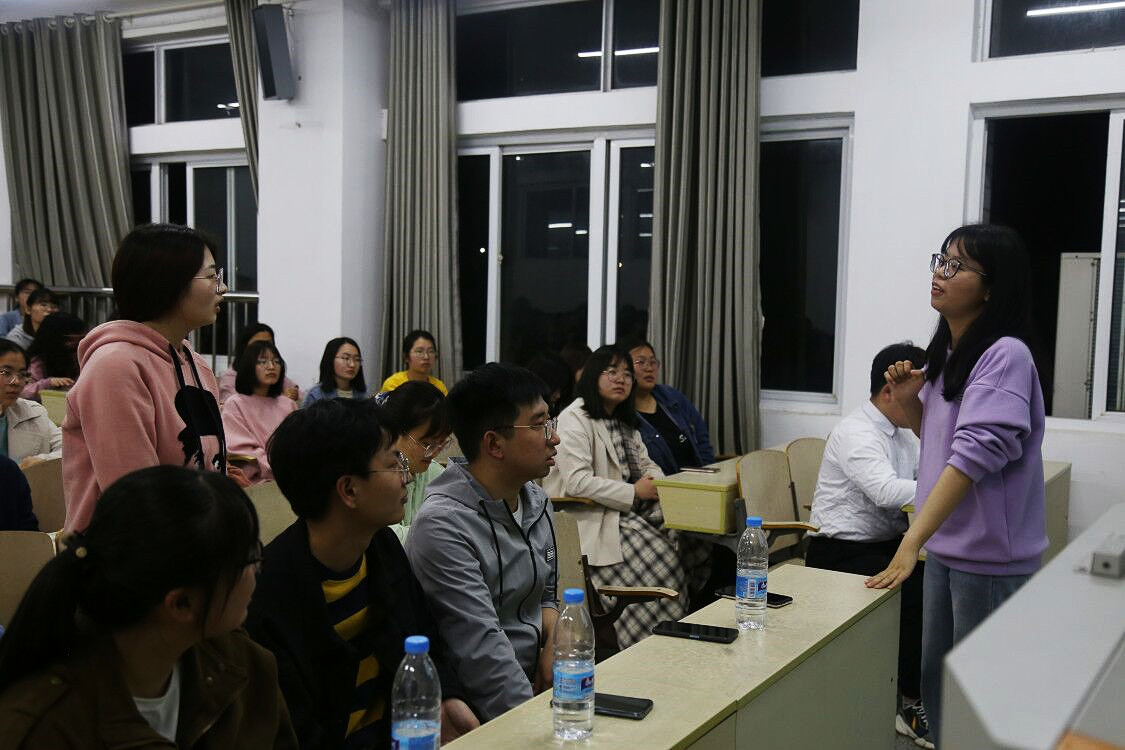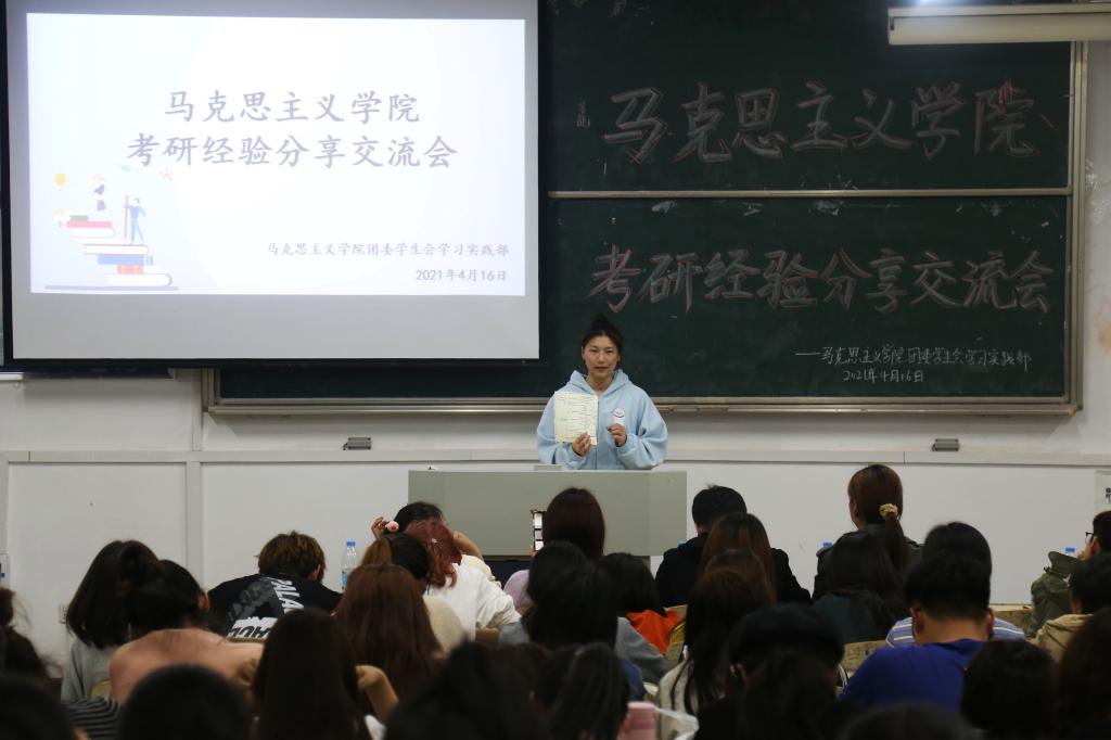 随后,2017级的十名应届毕业生从自身的考研经历谈起,在考研的选择、学习经验和方法、心态调整等方面,为在场的听众作指导。