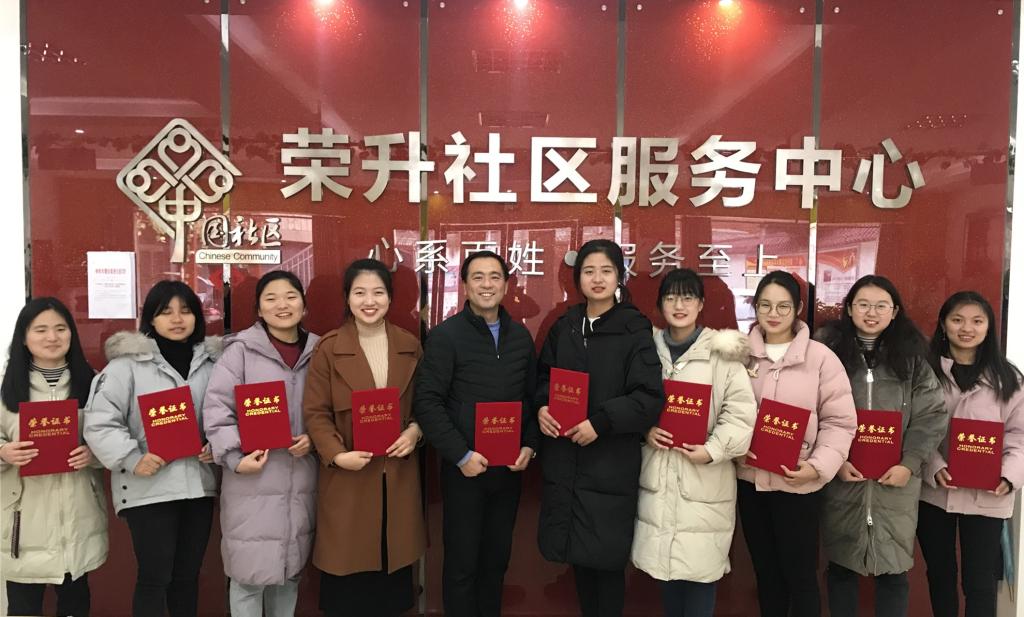 1月1日下午,sunbet“思源”青年志愿服务队及10名志愿者获安庆市大观区荣升社区表彰,分别获得“2019年度优秀星火志愿服务团队”和“2019年度十佳星火志愿者”荣誉称号。