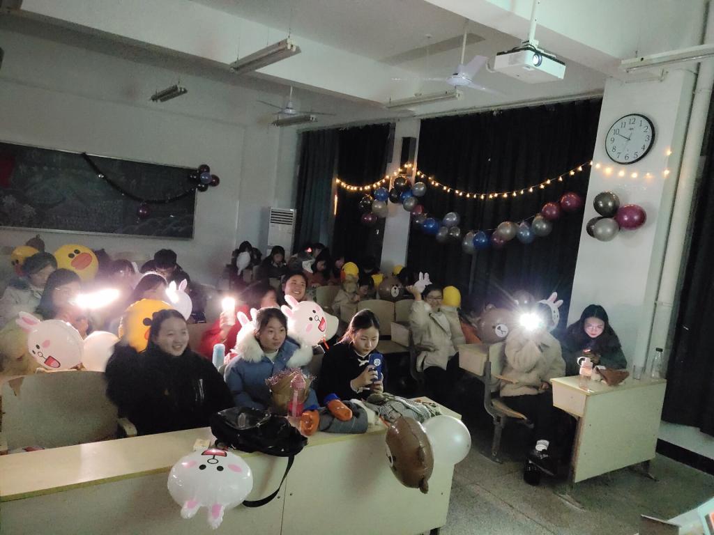 “载歌载舞 岁月有为早立志,有梦有诗 青春无限好扬帆。”12月27日文源楼107教室光影与音乐交汇、青春与激情碰撞,处处洋溢着欢快的节日气氛,思想政治教育2018级2班迎新年晚会在此举行。全班42名同学齐聚一堂,大家载歌载舞,享受着水果和小零食的鲜美、举办抽奖活动互送祝福,欢送硕果累累的2018,喜迎充满希望的2019。