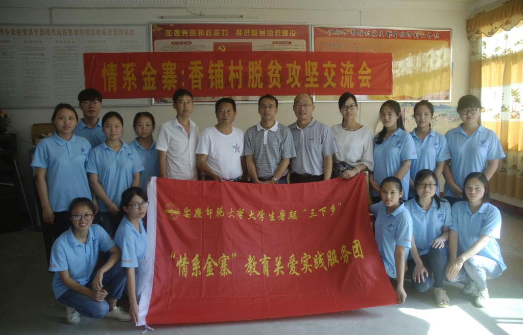 近日,sunbet“情系金寨”教育关爱实践服务团12名“三下乡”志愿者在金寨县香铺村开展脱贫攻坚交流会暨教育扶贫宣讲活动。